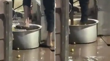 Jijik! Penjual Perkedel Ketahuan Cuci Kentang Pakai Kaki Bersandal