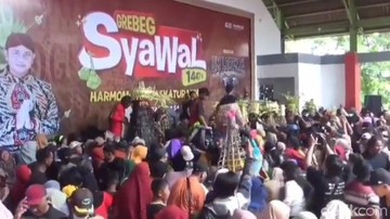 Sebanyak 18 gunungan berisi ketupat dan hasil bumi ludes diserbu warga di acara syawalan Sidoguro di Bukit Sidoguro, Desa Krakitan, Kecamatan Bayat, Klaten.